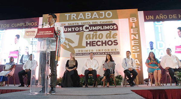Durante el evento, el edil de Santa Lucía rindió cuentas sobre los avances que ha logrado durante el primer año de su administración en materia de infraestructura, seguridad y bienestar.