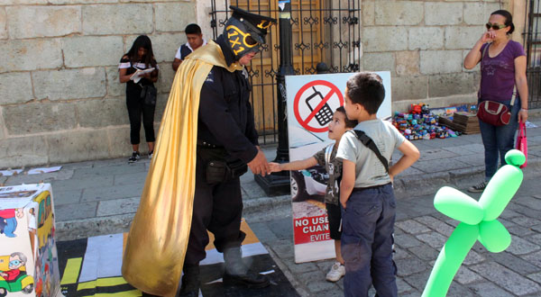 El personaje Súper Agente “Uno por Uno, Primero el Peatón”, es el encargado de conversar con los transeúntes acerca de la importancia de respetar los cruces de las calles, priorizando siempre la integridad de las personas. “Con el programa uno por uno, primero el peatón, se busca que los ciudadanos de Oaxaca tengan una cultura vial que nos beneficie a todas y todos”, señaló.