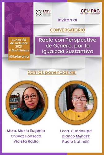San Raymundo Jalpan, Oax. 22 de octubre de 2021.- Radio con Perspectiva de Género, por la Igualdad Sustantiva, es el Conversatorio virtual que realizará el Congreso del Estado de Oaxaca este 25 de octubre de 2021, en el marco del Día Naranja por la eliminación de las violencias contra las mujeres.