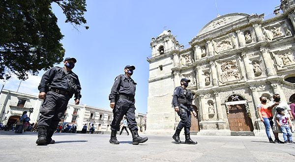 Oaxaca de Juárez, Oaxaca, a 31 de marzo, 2021.- El Ayuntamiento de Oaxaca de Juárez, a través de la Dirección de Seguridad Pública, Vialidad y Protección Ciudadana, ha reforzado la vigilancia en la ciudad capital, con énfasis en el Centro Histórico, para garantizar el orden y la seguridad con motivo de la presente temporada de Semana Santa.