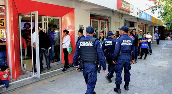 Oaxaca de Juárez, Oaxaca, a 18 de diciembre del 2019.- Para evitar eventualidades que pongan en riesgo el patrimonio económico de las y los capitalinos, el Ayuntamiento de Oaxaca de Juárez, a través de la Dirección de Seguridad Pública, Vialidad y Protección Ciudadana, exhorta a la población a extremar medidas de seguridad al momento de acudir a realizar el retiro o depósito de efectivo en instituciones bancarias.