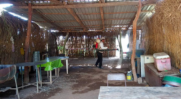 TEHUANTEPEC. El sector salud continúa con el programa de fumigación en edificios, escuelas y viviendas con la finalidad de combatir el vector que prolifera diversas enfermedades.