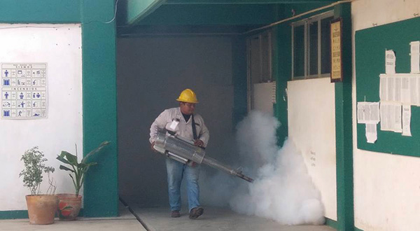 De hecho, acudieron a fumigar en el Colegio de Estudios Científicos y Tecnológicos del Estado de Oaxaca con el propósito de tener escuelas libres de larvas y moscos que trasmiten enfermedades como el zika, dengue clásico y hemorrágico, así como el chikungunya principalmente.