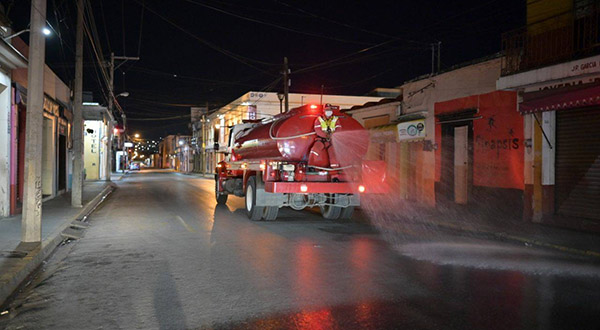 “Estamos realizando de forma coordinada con el Heroico Cuerpo de Bomberos de Oaxaca, la primera etapa de desinfección en las principales arterias del Centro Histórico, con el objetivo de disminuir el número de casos de coronavirus en la ciudad y sobre todo en el estado. Este es un gran esfuerzo que se está llevando a cabo entre los gobiernos municipal y estatal para salvaguardar la salud de la población”, destacó el subdirector de Regulación de la Actividad en la Vía Publica, Víctor Hugo Galicia Sarmiento.