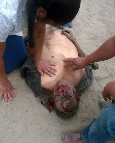 Enseguida la ambulancia OAX-047 de Cruz Roja acudió a la zona para atender al automovilista, pero los pobladores no querían que se le diera atención pre hospitalaria, por lo que el síndico municipal y personal de la Secretaria de Seguridad Publica (SSP), se trasladaron al lugar para evitar que los vecinos lincharan al de la camioneta roja.