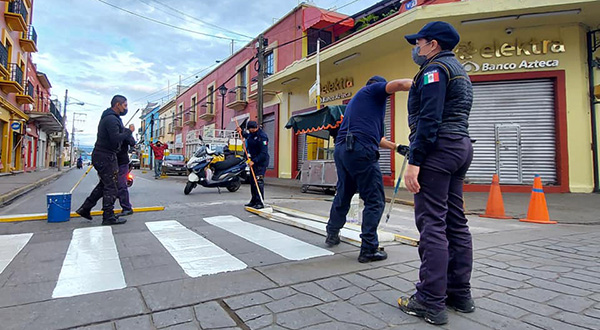 Rehabilita Ayuntamiento capitalino pintura de pasos peatonales y señalamientos restrictivos