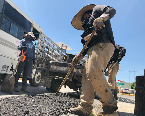 - Con la aplicación de 315 metros cúbicos de mezcla asfáltica en caliente, el Departamento de Maquinaria, Pavimentación y Bacheo ha atendido distintas vialidades de la ciudad capital.