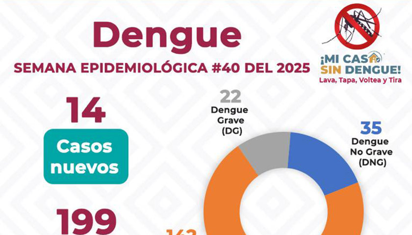 La dependencia indica que, para mantener controlada la transmisión del virus, se refuerzan las acciones de fumigación en zonas de riesgo, control larvario, eliminación de criaderos y promoción de hábitos de limpieza en patios y espacios comunes, durante esta temporada de lluvias.