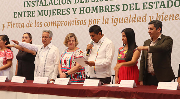 En el marco del evento protocolario presidido por el Gobernador del Estado, Salomón Jara Cruz y la presidenta del Instituto Nacional de las Mujeres (Inmujeres), Nadine Gasman Zylbermann, el titular del Poder Judicial firmó los compromisos por la Igualdad y Bienestar de las Mujeres, los cuales convocan a trabajar en el cumplimiento de la política nacional, estatal y municipal de igualdad para el bienestar de las mujeres y niñas, el ejercicio de sus derechos y el acceso a una vida libre de violencia.