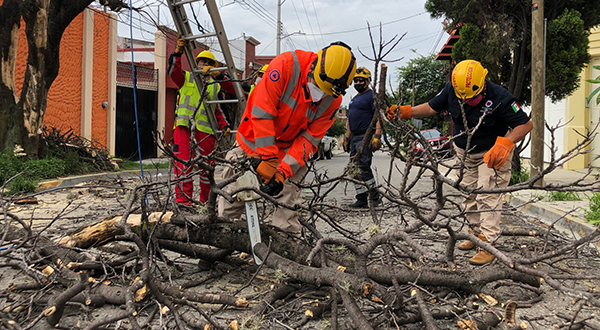 El subdirector de Protección Civil, Manuel Aguirre Cuéllar, subrayó el trabajo coordinado entre distintas áreas del Ayuntamiento, así como con instancias estatales y federales para dar atención al arbolado urbano que requiere de atención oportuna para evitar riesgos a la ciudadanía y a la comunidad vecinal.