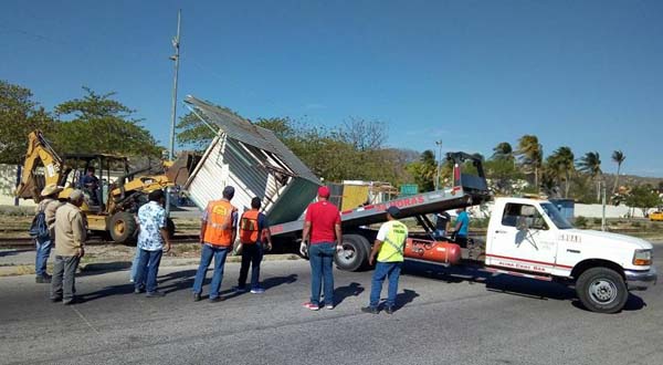Una cuadrilla de trabajadores se abocó a realizar las actividades en esa zona para subir a una grúa las casetas y posteriormente reubicarlas a unos 40 metros donde no estorbaran.