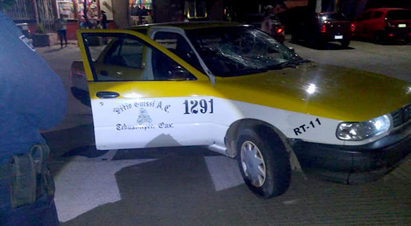 TEHUANTEPEC, OAX. Una presunta riña entre pareja estuvo a punto de terminar el tragedia, luego que destrozaran un taxi.