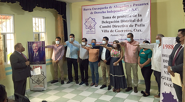 Putla Villa de Guerrero Oax.- Este fin de semana, la Barra Oaxaqueña de Abogados y Pasantes de Derecho Independientes A. C., tomó protesta a la Delegación Distrital de Putla Villa de Guerrero, donde refrendaron el compromiso de trabajar a favor de la sociedad putleca y oaxaqueña.