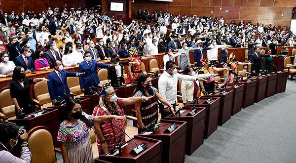 San Raymundo Jalpan, Oax. 13 de noviembre de 2021.- En el Salón de Plenos del Congreso del Estado de Oaxaca tomaron protesta de ley los y las Diputadas que conformarán la 65 Legislatura Local para el periodo 2021- 2023. En un hecho histórico, la Mesa Directiva electa estará integrada únicamente por mujeres, en razón de que ellas son mayoría en esta Soberanía.