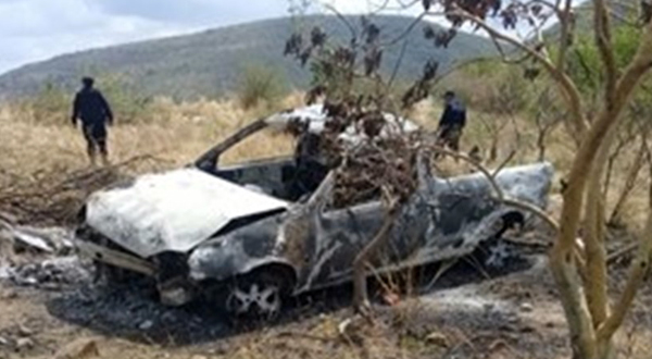 Huajuapan de León, Oax. – Cuerpos de seguridad hallaron un vehículo particular calcinado y abandonado luego de volcar en la carretera Huajuapan-Mariscala de Juárez, en la Mixteca Baja de Oaxaca.