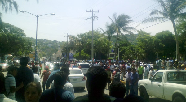 A las 11:40 horas, un grupo de camioneros liderados por Faustino Martínez y Oswaldo Castillo, así como otros locatarios, se concentraron en la esquina de la avenida Cinco de Mayo, con la intención de llevar a cabo una marcha protesta supuestamente para demandar mejoras al interior del Mercado Municipal y de paso aprovechar para exigir trabajo en la Refinería.