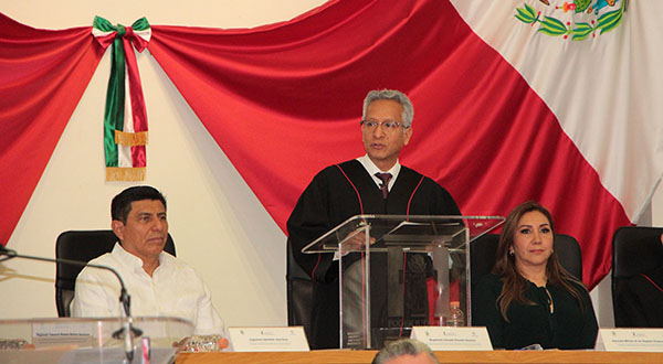 “Hoy, Oaxaca vive un momento histórico disruptivo, con un gobierno nuevo que busca la transformación de Oaxaca. El Poder Judicial del Estado se suma a ese proyecto porque concuerda con los fines que subyacen en los proyectos y las acciones que venimos realizando en los últimos tres años”, resaltó en la ceremonia que contó con la presencia de legisladores, integrantes de barras y colegios de abogados, académicos, titulares de diferentes secretarías y de tribunales especializados.