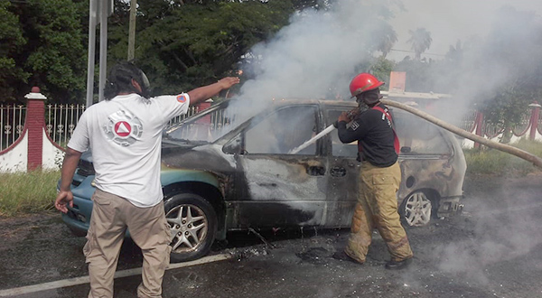 El responsable de Protección Civil informó que recibieron el reporte que poco después de las 17:00 horas una camioneta voyager comenzaba a arder de la parte de en medio de la unidad.