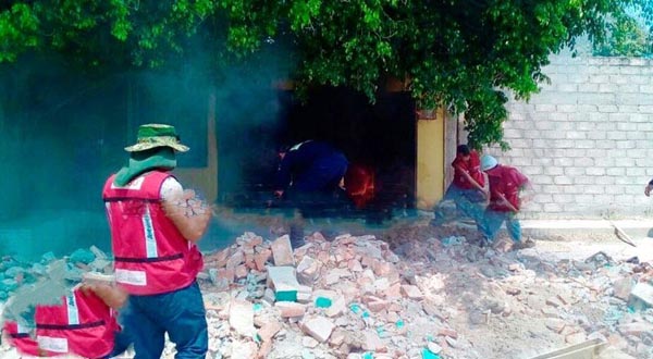 Con cubeta en mano los vecinos de la calle Morelos comenzaron a echarle agua al fuego, en tanto que unos obreros con palas también trabajaban para cubrir las llamas con tierra de un montículo de escombro que había en esa lugar.