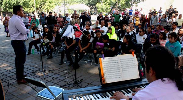 Por tal motivo a partir de las 10:30 de la mañana bajo “El Laurel” se realizó un concierto de ópera a cargo de los músicos Concertistas de Oaxaca, en donde deleitaron a capitalinos y niños de escuelas que participaron en esta actividad, al tiempo de unirse en una sola voz al interpretar “Solamente una vez”.