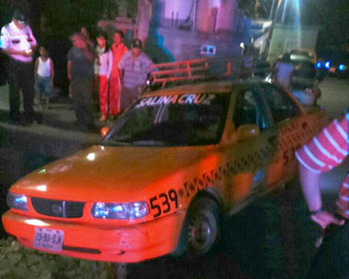 SALINA CRUZ. Agentes de la Policía Vial auxiliaron a los vecinos de la colonia San Pablo, luego de reportar a un ebrio taxista que minutos antes se había accidentado.