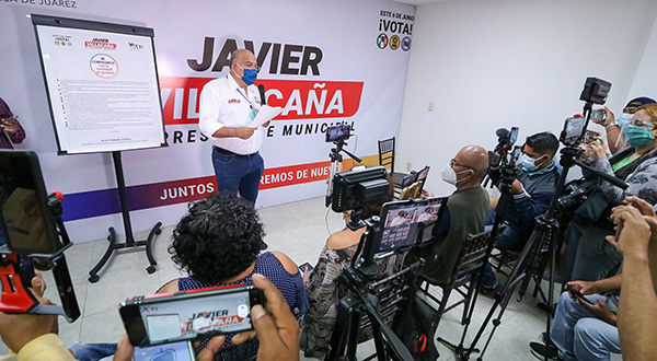 Oaxaca, Oax., 4 de mayo de 2021.- En su segundo día de actividades de campaña, Javier Villacaña Jiménez, candidato de la coalición “Va por Oaxaca” a la presidencia municipal, presentó ante medios de comunicación los “compromisos con la sociedad”, propuestas que serán una realidad para impulsar el rescate de la capital oaxaqueña.