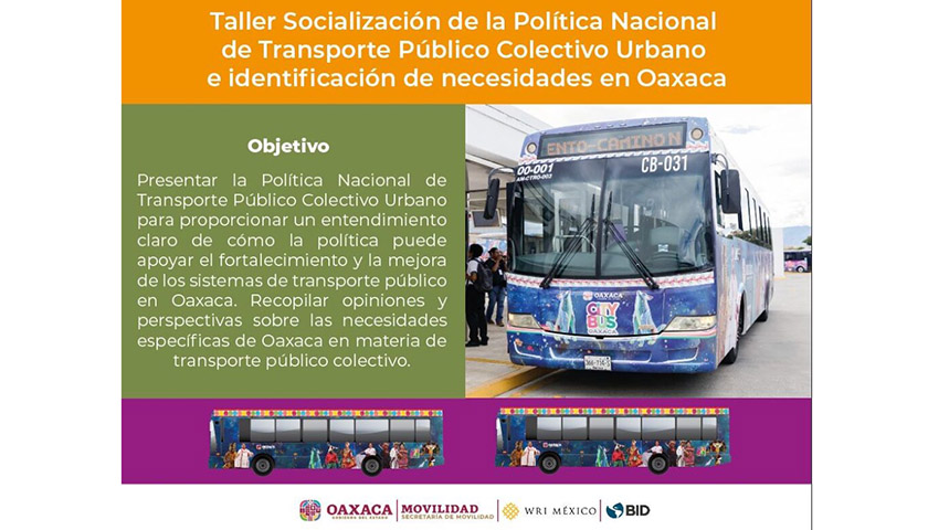 Oaxaca de Juárez, Oax. 25 de abril de 2024.- A fin de evaluar y documentar las condiciones del transporte público en la entidad, este 30 de abril se realizará el primer taller virtual denominado Socialización de la Política Nacional de Transporte Público Colectivo Urbano e identificación de necesidades locales en Oaxaca.