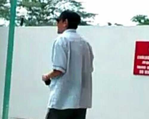 Al salir, se quita la máscara y en la calle la camisa, por lo cual se le observa la playera de color azul y se da a la fuga.