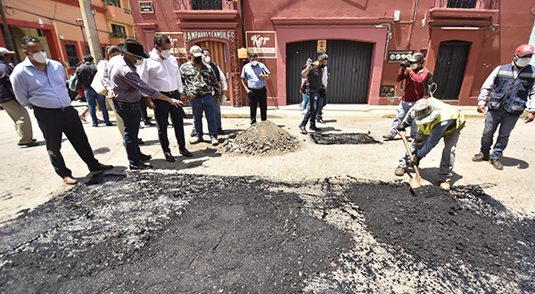 En la calle de Zaragoza casi esquina con Díaz Ordaz, al verificar las labores de bacheo en una zanja generada por trabajos de los Servicios de Agua Potable y Alcantarillado de Oaxaca (SAPAO), el Presidente Municipal Oswaldo García Jarquín exhortó al Gobierno del Estado y las dependencias estatales que realizan labores en la zona urbana, a realizar sus acciones con ahínco y cumplir con la responsabilidad de realizar obras con materiales de buena calidad y terminarlas correctamente para evitar la generación de baches y zanjas.