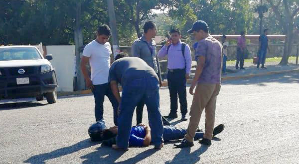 SALINA CRUZ, OAX. Un motociclista resultó con lesiones múltiples, luego de ser atropellado de forma brutal por un cafre taxista.