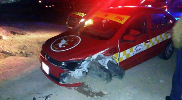De acuerdo a la versión de los afectados, los hechos se registraron a las 22:45 cuando el taxista, -de quien se desconocen sus generales-, al conducir a exceso de velocidad, impactó a un vehículo marca Nissan Tsuru negro con placas TLD-49-54 del Estado y a una camioneta Nissan X-trail de color rojo con placas de circulación 809-ZTZ.