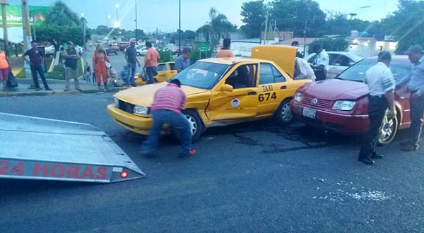 Elementos de la policía vial informaron que este accidente sobrevino después que el conductor del taxi con número económico 674 que realiza servicio colectivo en Bodega Aurera después de salir de su base intentaba incorporarse en carril que conduce a la zona centro.