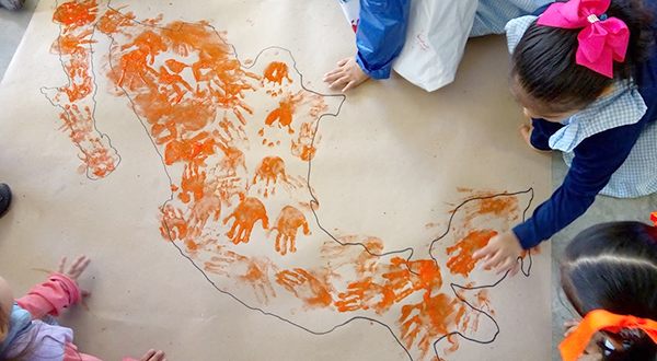 Entre otras de las actividades realizadas y para promover valores como el respeto, la tolerancia y la igualdad, niños y niñas del CENDI “Margarita Magón de Flores”, del Poder Judicial del Estado pintaron sus manos de naranja y plasmaron sus huellas en un mapa de la República Mexicana, con la finalidad de enseñarles que ese color representa un rechazo a la violencia contra niñas y mujeres.