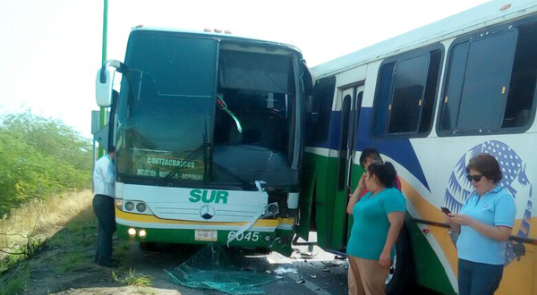 Una vez que se apersonaron en el lugar corroboraron que el autobús de la línea SUR tenía roto el parabrisas del lado del conductor y se había incrustado en la parte trasera del autobús Istmeño con número económico 8001 que cubre la ruta Salina Cruz – Juchitán.