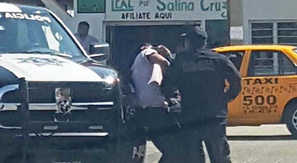 Salina Cruz, Oax. Tres policías no bastaron para someter a un ebrio sujeto que presuntamente escandalizaba en la vía pública. Esto provocó molestia entre los automovilistas quienes presenciaron el hecho al reprobar esta acción de los uniformados.