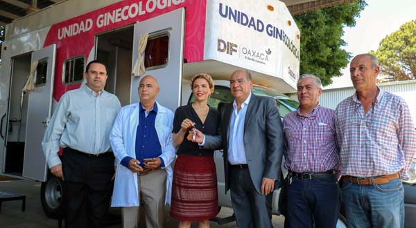 Resultado del trabajo en equipo entre la Secretaría de Administración, el Sistema DIF Estatal y los Servicios de Salud de Oaxaca (SSO), mujeres de municipios marginados del estado podrán acceder a una mejor salud a través de la Unidad Móvil de Atención Médica Ginecológica, entregada este viernes a la presidenta del organismo asistencial Ivette Morán de Murat.