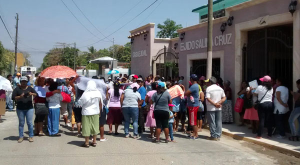 Salina Cruz, Oax. Unos 200 habitantes de la colonia Cerro Alto se manifestaron a las afueras de las oficinas del Ejido Salina Cruz, para protestar en contra del comisariado ejidal, Aurelio Díaz Méndez, porque no les quiere entregar la constancia de posesión y los está hostigando con la fuerza pública.