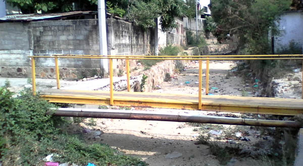 SALINA CRUZ, Oax. A dos años de que fuera demolido el puente que comunica a las calles Narciso Mendoza, Emiliano Zapata y Lázaro Cárdenas, hasta el momento no ha sido reparado y, representa un riesgo para los vecinos de la colonia San Pablo.