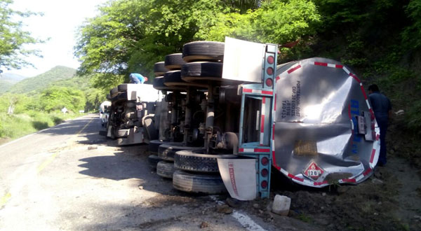Una pipa que transportaba combustible volcó en la carretera federal 190 que comunica al Istmo de Tehuantepec y no hubo personas lesionadas reportaron las corporaciones policíacas.